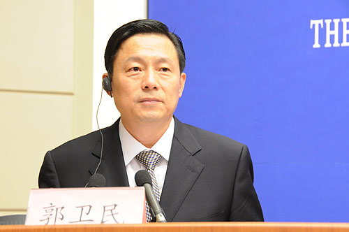 中央文化体制改革工作领导小组办公室主任、中宣部副部长孙志军和中央文化体制改革工作领导小组办公室副主任,文化部副部长欧阳坚、广电总局副局长赵实、新闻出版总署副署长蒋建国介绍深化文化体制改革的有关情况,并答记者问。图为发布会主持人、中共中央对外宣传办公室新闻发言人郭卫民。